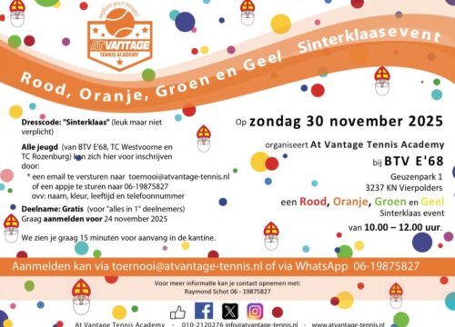 At Vantage Tennis Academy is een tennisschool met een zeer breed aanbod en een serieuze partij in de Nederlandse tenniswereld. We verzorgen tennislessen op prestatief en recreatief niveau op tien locaties. We zijn actief op tennisverenigingen in Rotterdam, Dordrecht, Capelle aan den IJssel, Rockanje, Rozenburg, Vierpolders, Zwartewaal, Brielle en Waddinxveen. En…., we blijven groeien! Dat kan alleen met de juiste mensen, trainers met ambitie, die op dezelfde wijze denken en handelen. Dat betekent dat je naast je trainerskwaliteiten, betrouwbaarheid, betrokkenheid vooral ook professionaliteit hoog in het vaandel hebt staan.